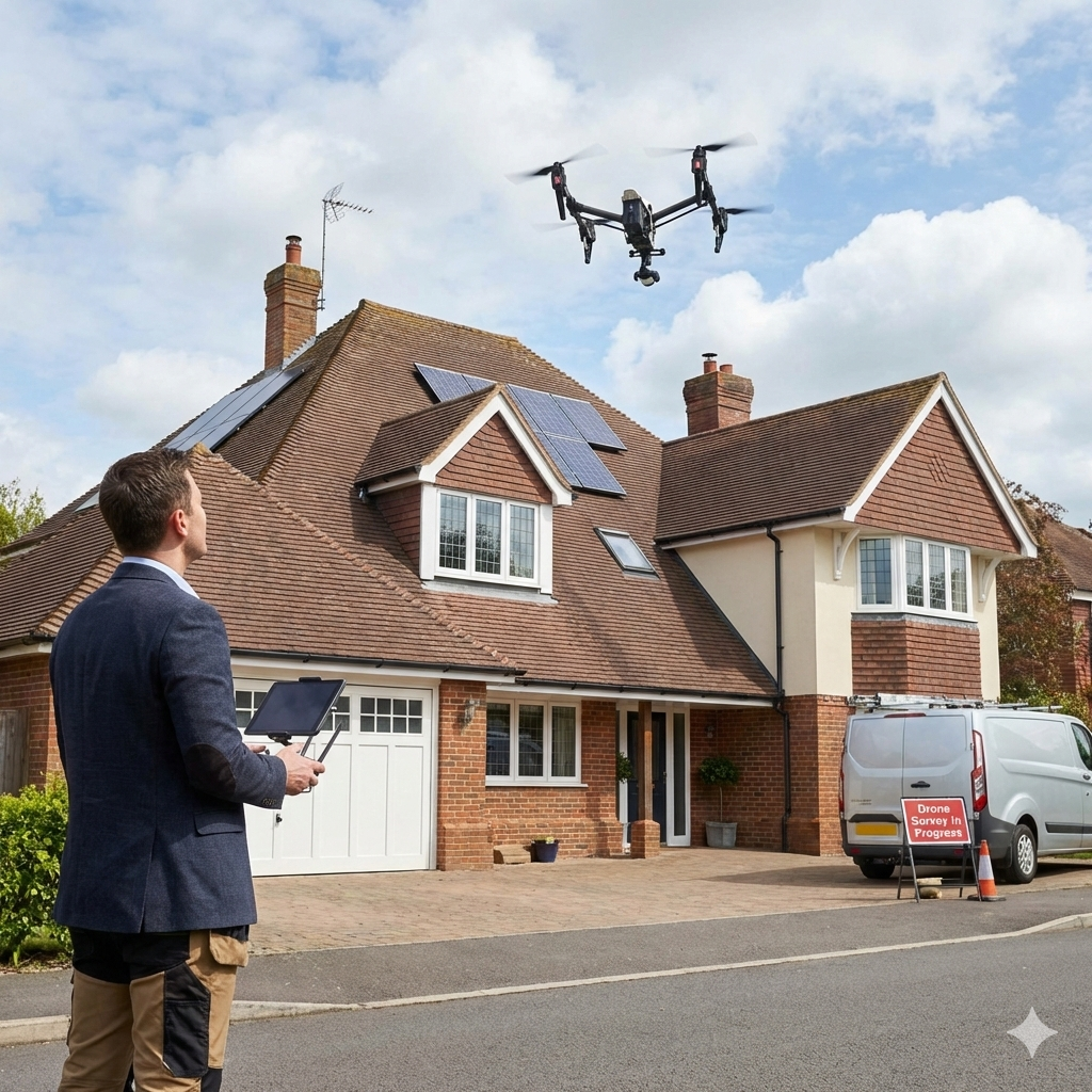 Drone use depends on weather conditions, site access, airspace restrictions and safe operation requirements. It is not possible in all locations or situations. Where a drone cannot be used, this will be clearly stated in the report together with any limitations.